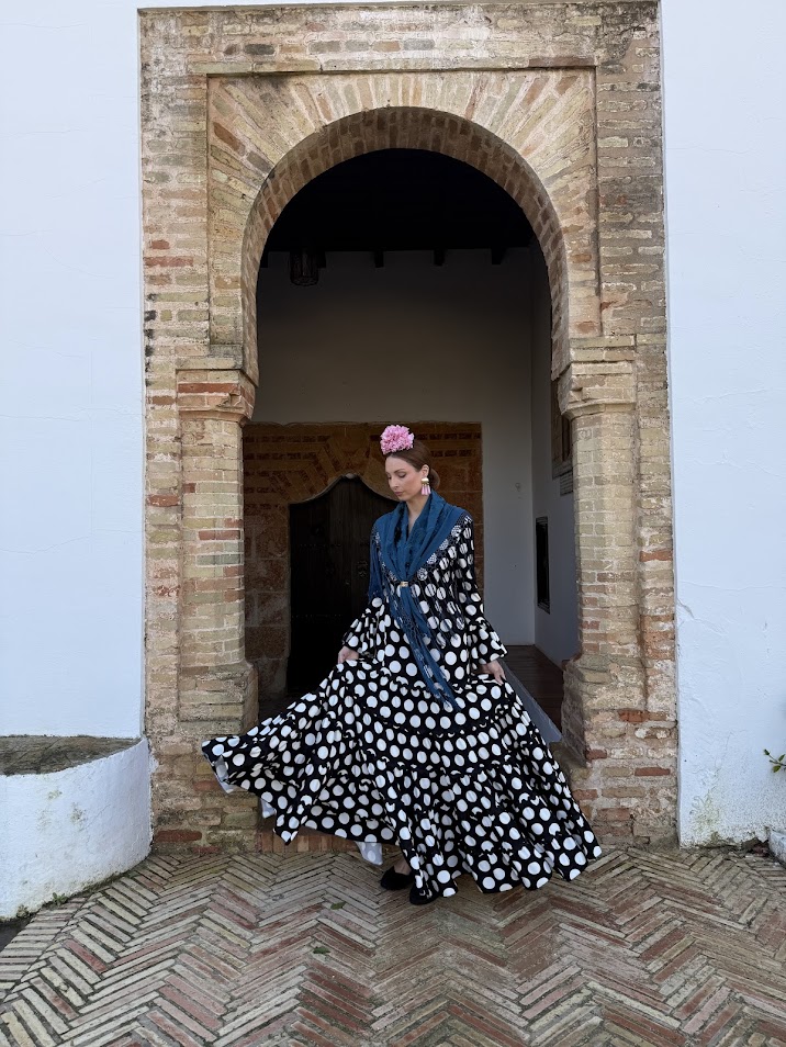 DESCRIPCION : Traje de flamenca confeccionado en punto elástico (92% poliéster, 8% elastano). Este modelo lleva el talle ajustado hasta debajo del pompis y faldón canastero de cinco cortes con ondulinas anchas de color negro en cada unión.
